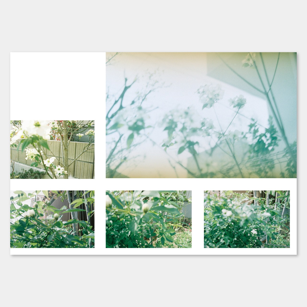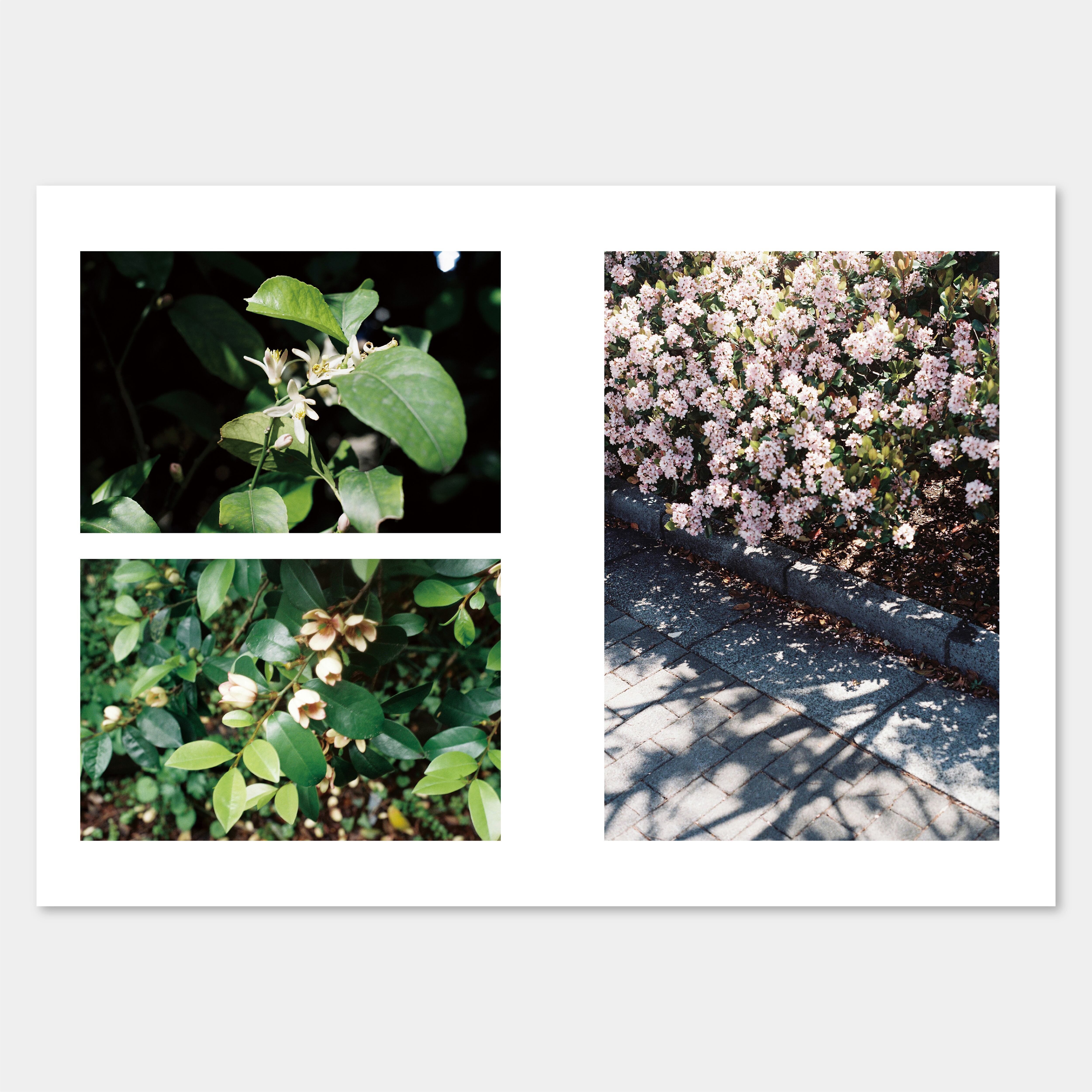 写真との向き合い方の変化を記録した写真集を作ろうと思った。何気なく始めた写真だったが、いつの間にか自分の制作には欠かせない要素になっていた。写真をはじめて七年ほど、短いながらも、写真に対する向き合い方は変わり続けているように思える。劇的に変わるきっかけもあれば、少しずつ学んで変容してもいる。見返してみると、自分の写真は緑や花が多いように思えた。なので変化の一つの指標として、タイトルを「花」とする。